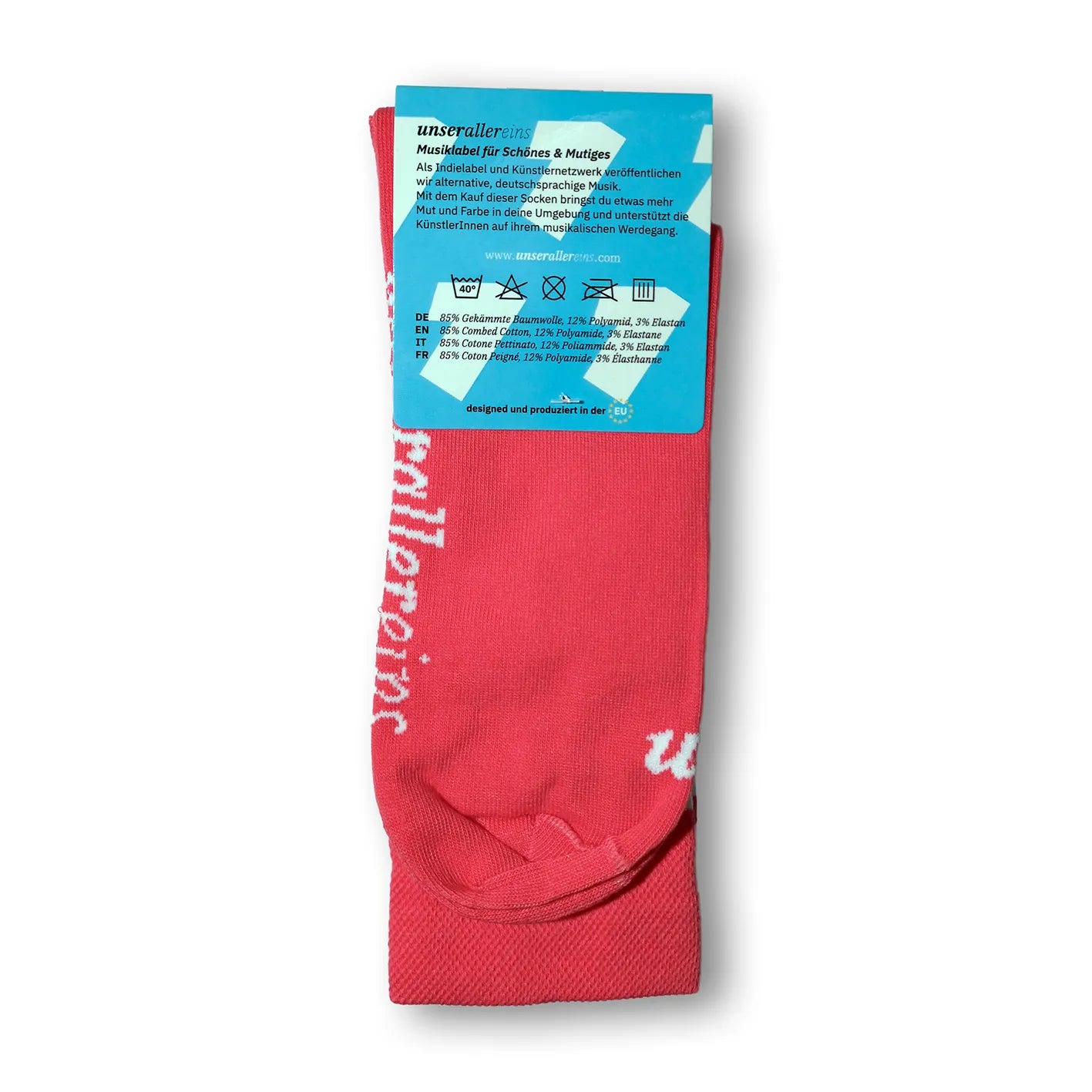 Mit dem Kauf dieser Socken bringst du etwas mehr Mut und Farbe in deine Umgebung und unterstützt die Künstler*innen auf ihrem musikalischen Werdegang.